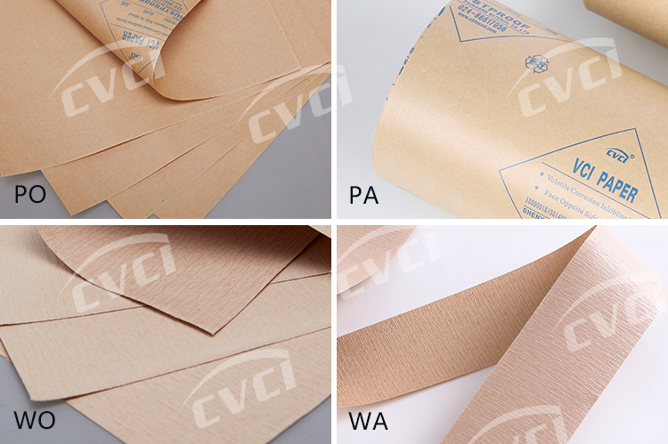 將VCI(氣相緩蝕劑)含浸于平紋或皺紋中性原紙上起到防銹目的,在中性防銹原紙上可通過復合PE層起到防水包裝目的。其中,VCI起防銹作用,平紋或皺紋原紙為載體,PE層加強防水防潮功能。我們的防銹紙可按用戶要求提供印刷服務。產(chǎn)品滿足標準QB/T 1319或JIS Z 1535要求。